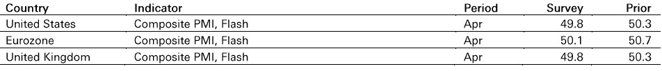 In the UK, CPI rose to 3.3% yoy in March, from 3.0% yoy in February, as expected, on higher energy prices. Core CPI held steady, edging lower to 3.1% yoy in March from 3.2% yoy in February.