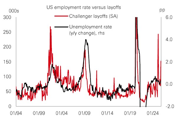 Taking a step back, some analysts think that robust profits growth prevents a sharp deterioration in the labour market. In that respect, September’s payrolls were comforting, but it is premature to sound the all-clear, given some other indicators have been more downbeat and require careful monitoring: ADP private payrolls, which question the strength of September’s official payrolls; and Challenger layoffs, which spiked in October and would point to rising unemployment if they do not correct back down in November. The data can still be a source of volatility heading into year-end.