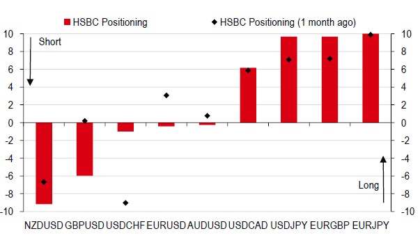Note: ^DXY = US Dollar Index, is an index (or measure) of the value of the USD against major global currencies, including the EUR, JPY, GBP, CAD, SEK and CHF. N/A = Not applicable, as we only provide short-term direction for those currency pairs from this issue. Source: HSBC