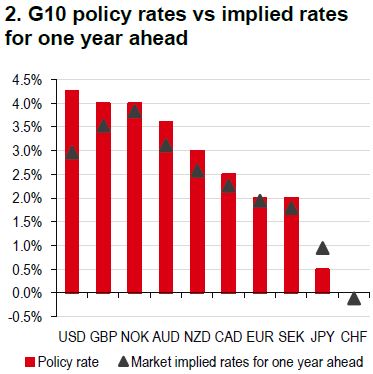 As for GBP-USD, US factors would probably have a more dominant impact. The Federal Reserve (Fed) resumed its policy easing, with a widely expected 25bp cut in September; however, the details of the decision were bordered on the hawkish side of expectations (for more details, please refer to USD: The Fed cuts rates for the first time this year). While these factors supported the USD, the outlook remains weak, as the Fed’s easing path is likely to be in contrast to much of other G10 central banks (Chart 2). We still expect the USD to weaken gradually in the months ahead, and that also means GBP-USD could go higher.