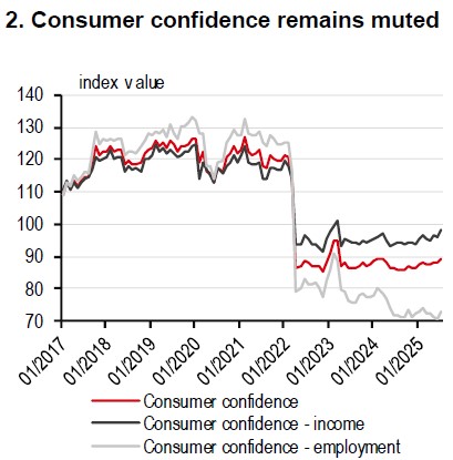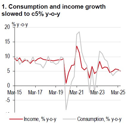The muted Golden Week performance carries on some of the recent trends as seen in softer consumption data. Retail sales, growing under 4% y-o-y in recent months, have faced some headwinds due to lingering labour market and property sector pressures. Wage growth is running below the pre-pandemic level at c5% y-o-y versus c9% in 2019. Consumer confidence has yet to pick up, while the youth unemployment rate reached 18.9% in August.