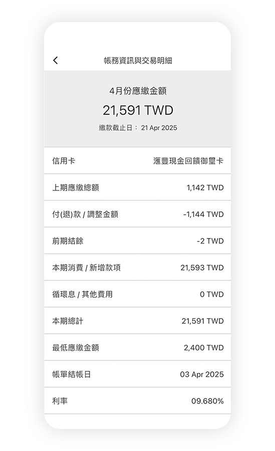 提醒您,滙豐(台灣)信用卡網路服務與信用卡行動服務App為同一組使用者帳號及密碼。