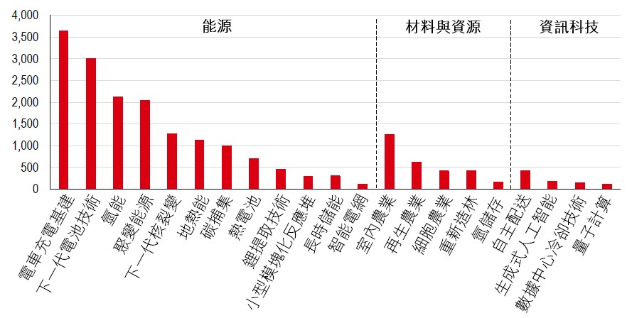 圖 3:氣候與清潔技術新興領域(已投資本總額,百萬美元,2023 年起)