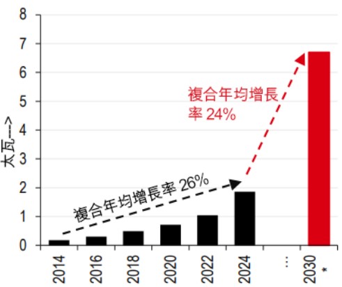 全球範圍內可再生能源承諾與政策正在推動可再生能源和太陽能的發展,其中包括:到 2030 年將可再生能源發電裝機容量提升至三倍,至少達到 11 太瓦 (COP28);擺脫對化石燃料的依賴 (REPowerEU);到 2030 年動員 1 萬億美元太陽能投資(國際太陽能聯盟);以及中國、印度、阿聯酋、南非、巴西等國制定的多項國家層面支持政策與目標。此外,為與國際能源署6淨零排放目標保持一致,到 2030 年太陽能發電量需達到約 9,200 太瓦時,這意味著需在 2024 年的水平上實現約 28% 的年均增長。