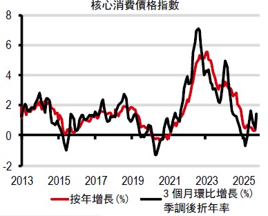 總而言之,我們近期已將2025 年經濟增長預測上調至5%(此前為4.2%),並將2026 年的預測上調至4.5%(此前為4.0%)。此外,通脹保持溫和,截至10 月,年初至今的整體消費價格指數按年漲幅已放緩至1.4%。鑒於通脹趨勢溫和,我們近期將2025 年整體通脹預測小幅下調至1.4%(此前為1.5%),但維持2026 年1.7%的預測不變。