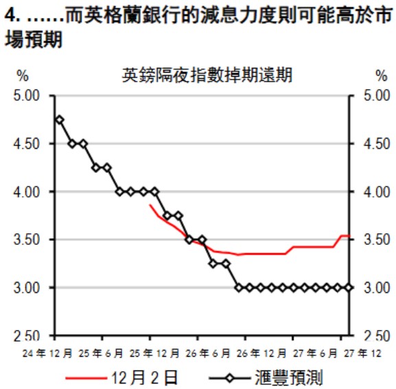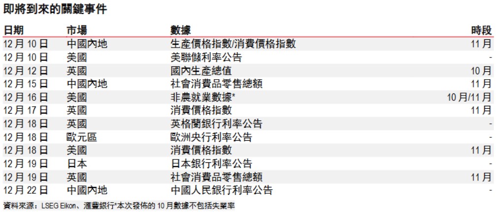 英國備受期待的預算案雖然仍有許多結構性問題未能解決,但其遵循財政規則,並將財政迴旋空間擴大逾一倍。鐵路票價和能源價格的凍結舉措應會推動消費價格指數繼續回落,從而支持英格蘭銀行進一步減息。與此同時,日本內閣批准了一項規模相當於國內生產總值3.2%的經濟刺激計劃,這也支持我們對日本銀行在12月加息25個基點的預期。