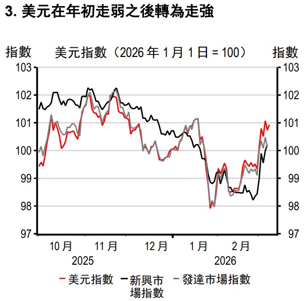 亞洲方面,中國內地1-2月貿易數據大幅走強,市場關注點聚焦於「十五五」規劃。該規劃將2026年經濟增長目標略降至4.5%-5.0%區間,並將由財政政策提供支持。政策重點包括提振國內需求、加大反內卷力度,同時平衡貿易關係。